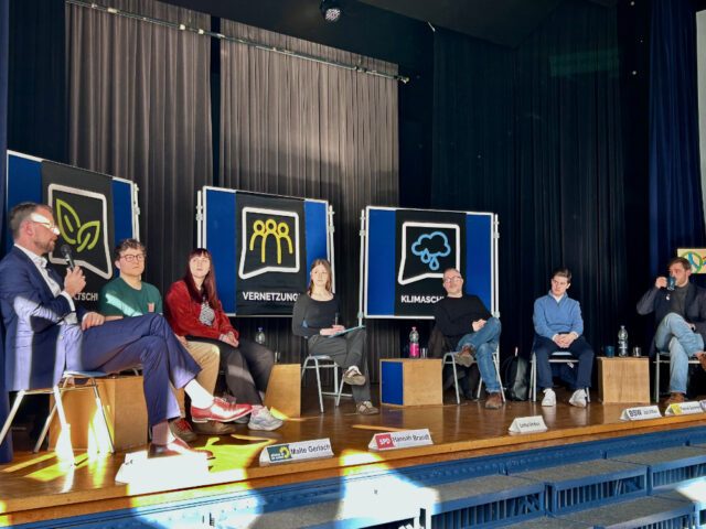Am Freitag, den 27. Februar 2026, fand in der 3. und 4. Stunde in der Aula unserer Schule eine Podiumsdiskussion zum Thema „Klimafreundliche Stadtentwicklung“ statt. Die Veranstaltung richtete sich an alle Kurse der Q2 und Q4 und sollte den Schülerinnen und Schülern im Vorfeld der anstehenden Kommunalwahl einen Einblick in kommunalpolitische Entscheidungsprozesse ermöglichen. Organisiert und durchgeführt wurde die Veranstaltung von der SV, insbesondere von Sissi Zedelmeier (Q2) sowie Lotta Unden (10d), die die Veranstaltung moderierte.