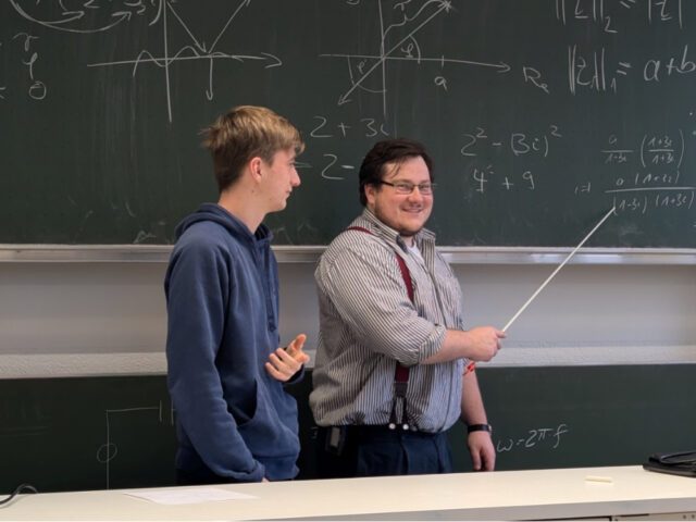 Nur zwei Wochen nach dem Besuch von Dr. Gabriel Knotz durften wir erneut einen ehemaligen Schüler an der Engelsburg begrüßen. Johannes Breidenbach kehrte an seine alte Schule zurück, um dem Physik-Leistungs- und Grundkurs der Q4 sowie weiteren interessierten Schülern die Welt der komplexen Zahlen näherzubringen. Johannes hat in Kassel theoretische Elektrotechnik studiert und wird in Kürze sein Promotionsstudium aufnehmen.