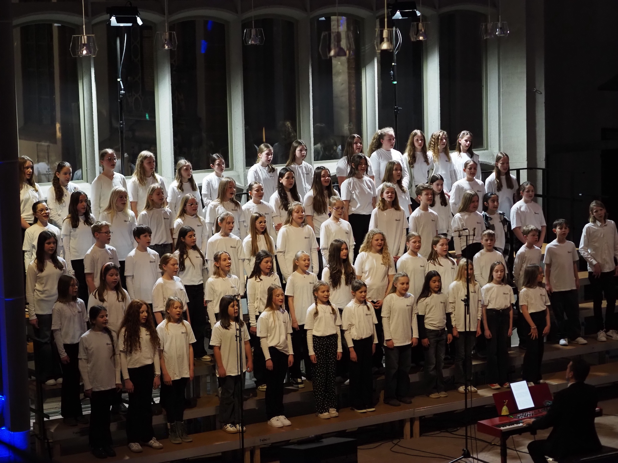Den musikalischen Abend eröffneten die Skylights Juniors, unter der engagierten Leitung von Herrn Moeller (unsere Sängerinnen und Sänger der Unterstufe). Mit großer Freude und einer bemerkenswerten Präzision präsentierten sie Stücke wie „Ever a Song“, „Million little Miracles“ und „Golden“.