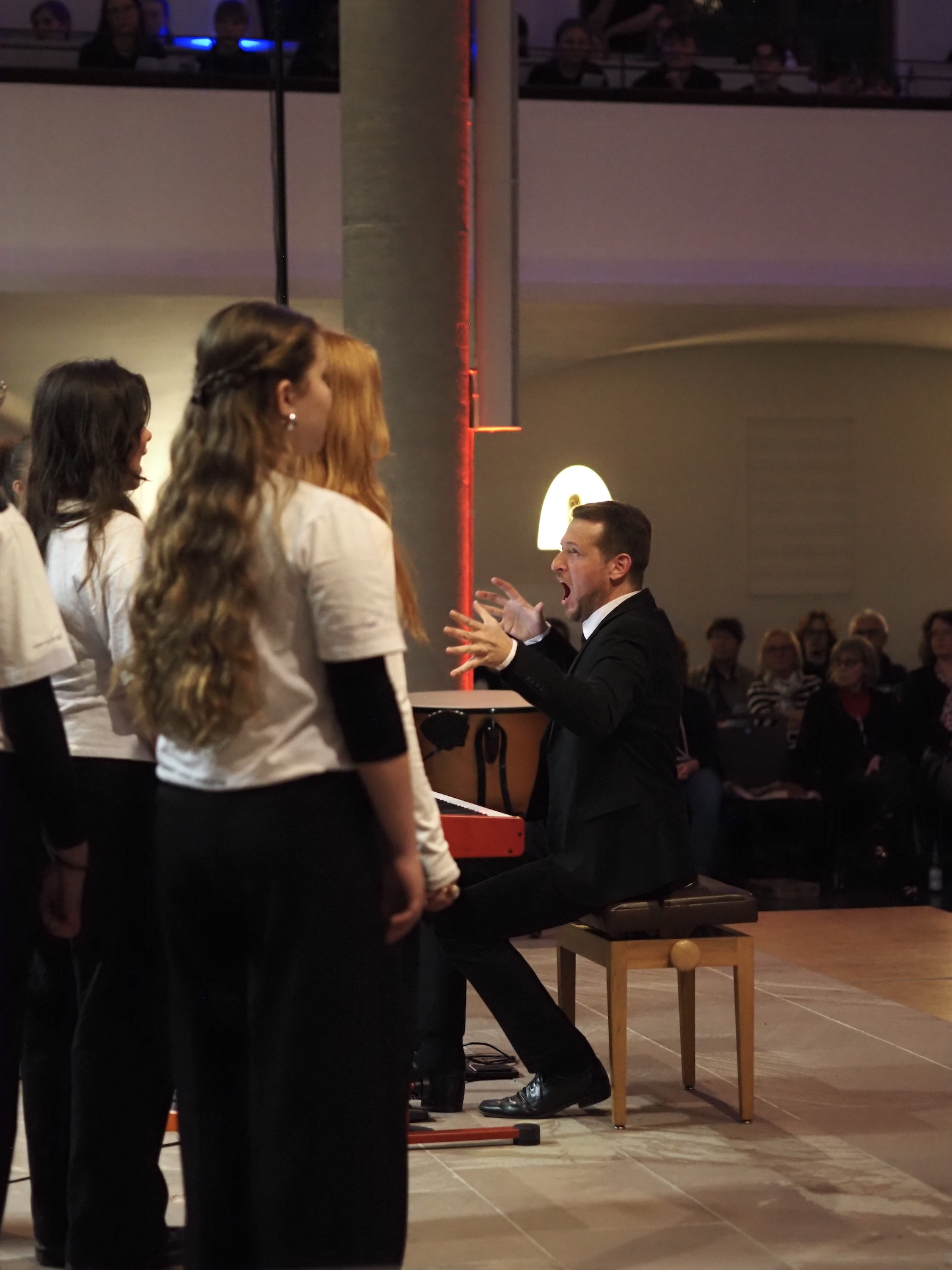 Besonders beim anspruchsvollen „Kyrie Eleison“ zeigte der Chor sein ganzes Können – getragen von einer fantastischen Sologruppe, bestehend aus Ashley Collins, Sophia Mocigemba und Carlotta Pabst. Mit modernen Pop- und Rock-Klassikern wie Madonnas „Like a Prayer“ und Bonnie Tylers Hymne „Total Eclipse of the Heart“ sowie dem Stück „All things new“ stellten die Jugendlichen ihre enorme Vielseitigkeit und Energie unter Beweis.